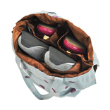 旅行や出張、スポーツ、室内行事の際にも あると便利なシューズバッグです。 内側に仕切りがあり、2足入れられる ので上履きと外履きを分けられます。 靴が動きにくいので傷や汚れも安心です。 内側に消臭タグが付いています。 かわいいことりのチャーム付き。