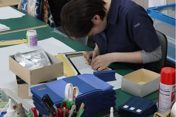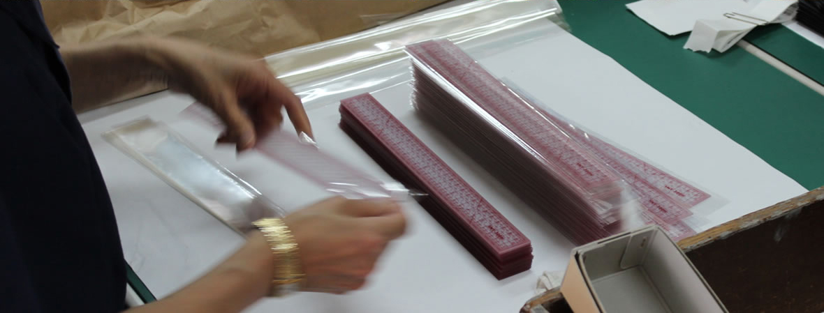正確さが求められる製図用品。仕上がった商品を丁寧に、細かくチェックしお客様のお手元にお届けします。職人の手作業で生産される製品だからこそ、この厳しいチェック作業が現在のコンサイスのクオリティを保つ一つの要因です。