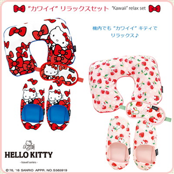 機内でも”カワイイ”キティでリラックス♪エアピロー/スリッパ/アイマスクの3点セット!