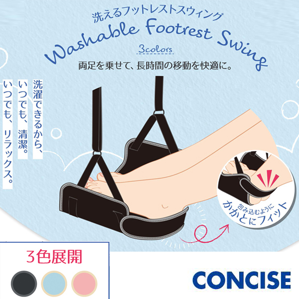 いつでも清潔、いつでもリラックス、両足乗せて長時間の移動を快適に。洗えるフットレストスウィング。